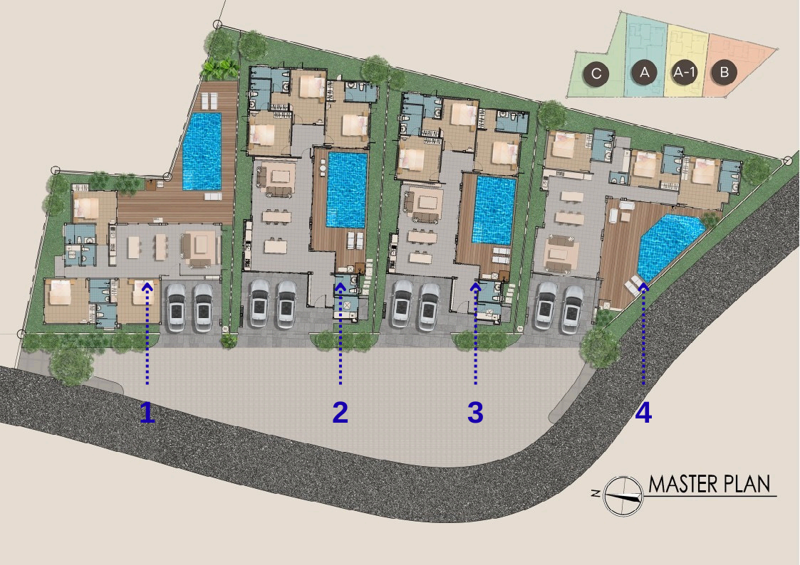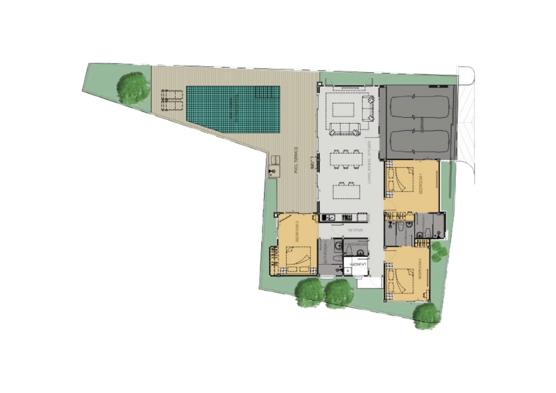 This layout offers a well-balanced living environment, with spacious common areas, private en-suite bathrooms for all bedrooms, and a large pool terrace designed for relaxation and outdoor enjoyment.